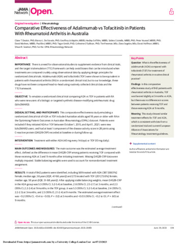 | Title: | Comparative Effectiveness of Adalimumab vs Tofacitinib in Patients With Rheumatoid Arthritis in Australia |