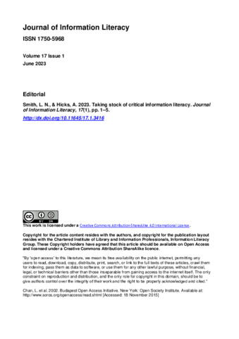 Title: | Taking stock of critical information literacy |