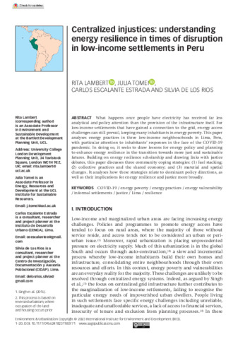 Title: | Centralized injustices: understanding energy resilience in times of disruption in low-income settlements in Peru |