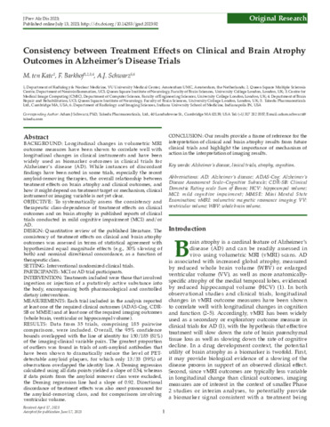Consistency between Treatment Effects on Clinical and Brain Atrophy Outcomes in Alzheimer's Disease Trials.