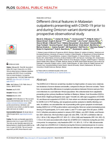 Title: | Different clinical features in Malawian outpatients presenting with COVID-19 prior to and during Omicron variant dominance: A prospective observational study |
