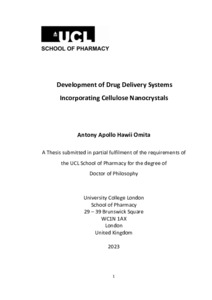 Title: | Development of Drug Delivery Systems Incorporating Cellulose Nanocrystals |