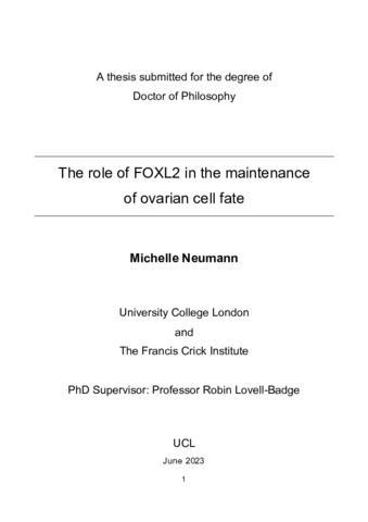 Title: | The role of FOXL2 in the maintenance of ovarian cell fate |