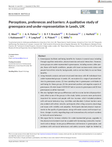 | Title: | Perceptions, preferences and barriers: A qualitative study of greenspace and under-representation in Leeds, UK |