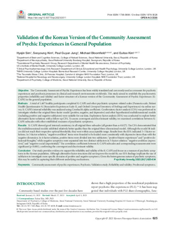 Title: | Validation of the Korean Version of the Community Assessment of Psychic Experiences in General Population |