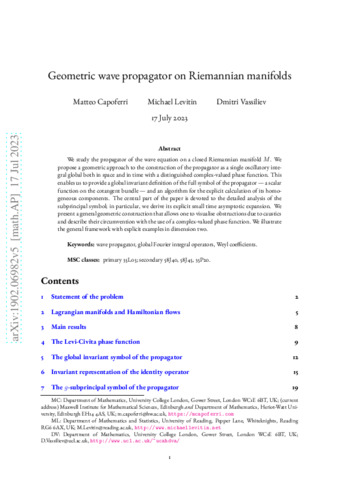 Geometric wave propagator on Riemannian manifolds.