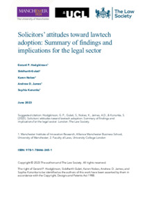 Title: | Solicitors’ attitudes toward lawtech adoption: Summary of findings and implications for the legal sector |
