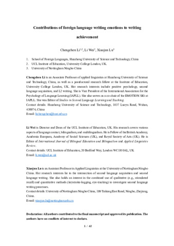 | Preview | Text Li_Contributions of foreign language writing emotions to writing achievement_AAM.pdf Download (792kB) | Preview |