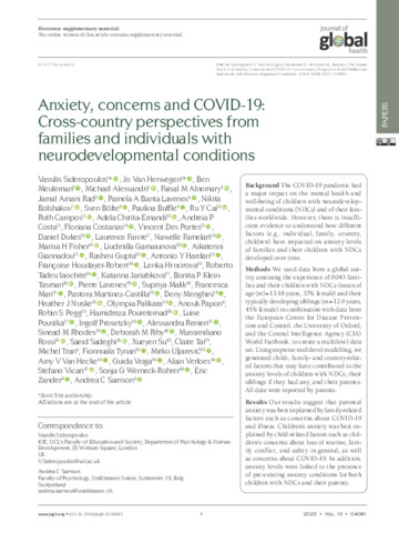 Title: | Anxiety, concerns and COVID-19: Cross-country perspectives from families and individuals with neurodevelopmental conditions |