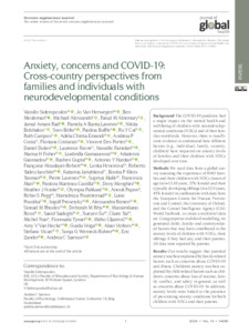 Anxiety, concerns and COVID-19: Cross-country perspectives from families and individuals with neurodevelopmental conditions.