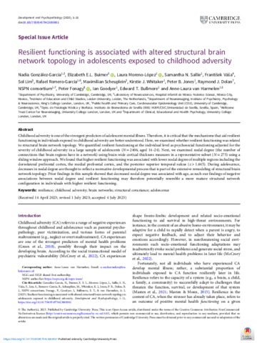 Title: | Resilient functioning is associated with altered structural brain network topology in adolescents exposed to childhood adversity |