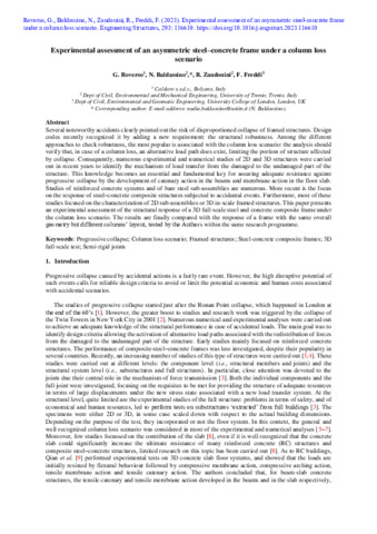 | Title: | Experimental assessment of an asymmetric steel–concrete frame under a column loss scenario |
