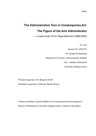 Title: | The Administrative Turn in Contemporary Art: The Figure of the Arts Administrator — a case study of the Taipei Biennial (1996-2020) |