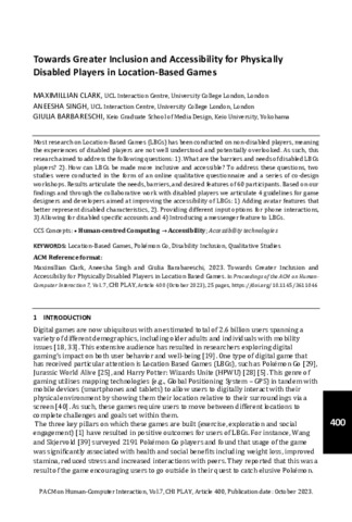 | Title: | Towards Greater Inclusion and Accessibility for Physically Disabled Players in Location-Based Games |