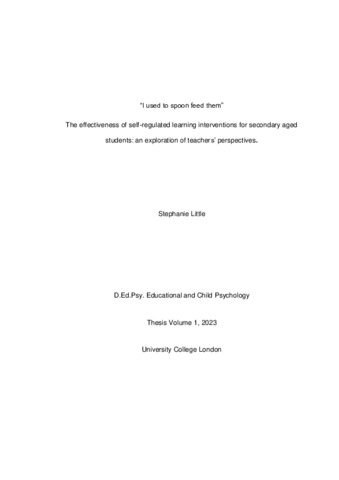 “I used to spoon feed them” The effectiveness of self-regulated learning interventions for secondary aged students: an exploration of teacher’s perspectives.