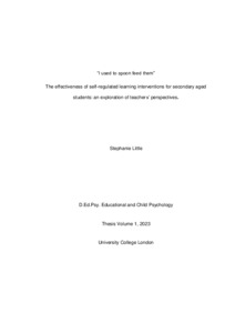 | Title: | “I used to spoon feed them” The effectiveness of self-regulated learning interventions for secondary aged students: an exploration of teacher’s perspectives |