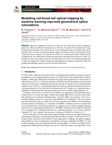 Title: | Modelling red blood cell optical trapping by machine learning improved geometrical optics calculations |