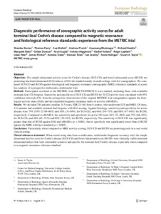 Title: | Diagnostic performance of sonographic activity scores for adult terminal ileal Crohn's disease compared to magnetic resonance and histological reference standards: experience from the METRIC trial |