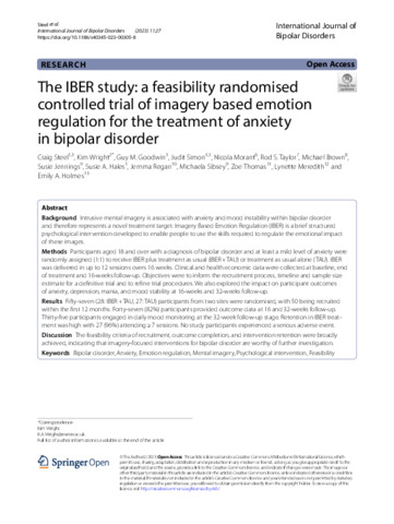| Title: | The IBER study: a feasibility randomised controlled trial of imagery based emotion regulation for the treatment of anxiety in bipolar disorder |