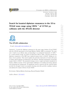 Title: | Search for boosted diphoton resonances in the 10 to 70 GeV mass range using 138 fb−1 of 13 TeV pp collisions with the ATLAS detector |