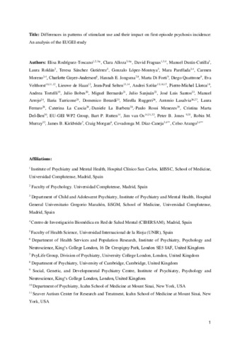 Title: | Differences in Patterns of Stimulant Use and Their Impact on First-Episode Psychosis Incidence: An Analysis of the EUGEI Study |
