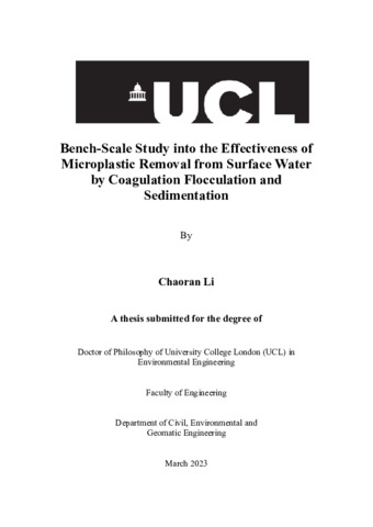 | Title: | Bench-Scale Study into the Effectiveness of Microplastic Removal from Surface Water by Coagulation Flocculation and Sedimentation |
