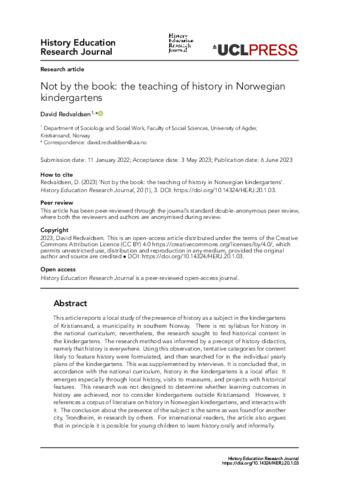 Title: | Not by the book: the teaching of history in Norwegian kindergartens |