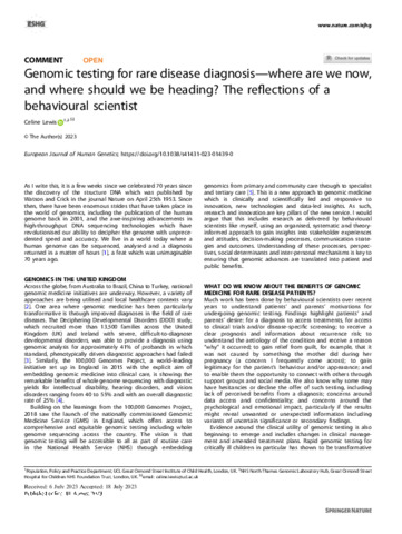 Title: | Genomic testing for rare disease diagnosis—where are we now, and where should we be heading? The reflections of a behavioural scientist |