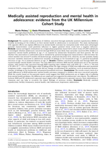 Title: | Medically assisted reproduction and mental health in adolescence: evidence from the UK Millennium Cohort Study |