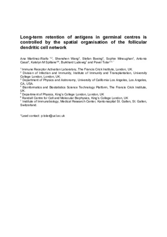 Title: | Long-term retention of antigens in germinal centers is controlled by the spatial organization of the follicular dendritic cell network |