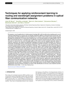 | Title: | Techniques for applying reinforcement learning to routing and wavelength assignment problems in optical fiber communication networks |