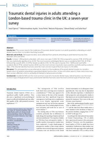 Title: | Traumatic dental injuries in adults attending a London-based trauma clinic in the UK: a seven-year survey |