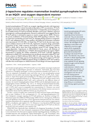 Title: | β-lapachone regulates mammalian inositol pyrophosphate levels in an NQO1- and oxygen-dependent manner |