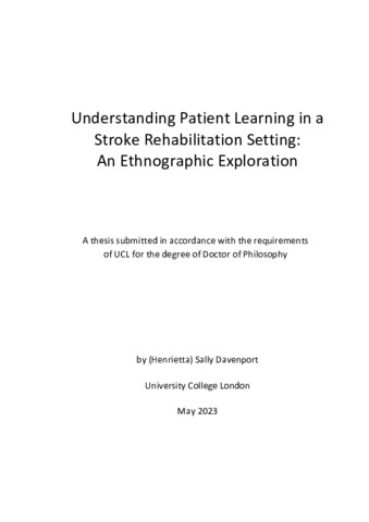 Title: | Understanding Patient Learning in a Stroke Rehabilitation Setting: An Ethnographic Exploration |