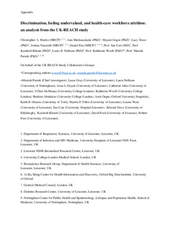 | Title: | Discrimination, feeling undervalued, and health-care workforce attrition: an analysis from the UK-REACH study |