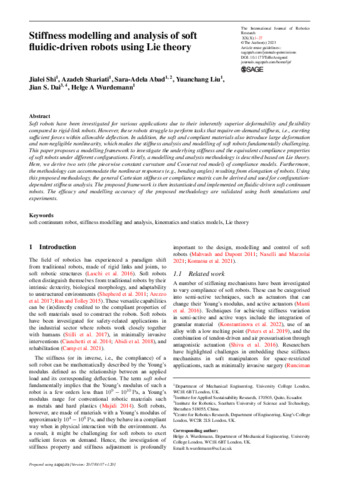 Title: | Stiffness modelling and analysis of soft fluidic-driven robots using Lie theory |