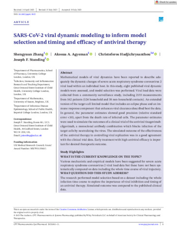 Title: | SARS-CoV-2 viral dynamic modeling to inform model selection and timing and efficacy of antiviral therapy |