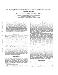 Title: | Pre-training with Scientific Text Improves Educational Question Generation |
