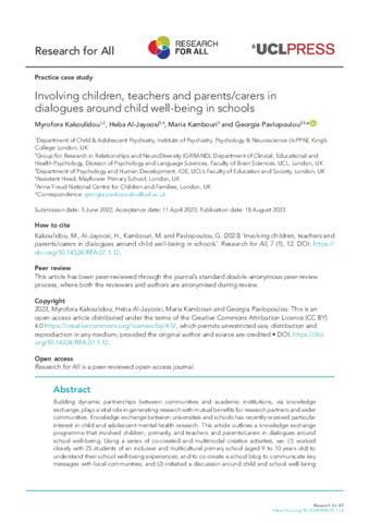 | Title: | Involving children, teachers and parents/carers in dialogues around child well-being in schools |