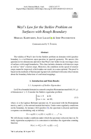 Title: | Weyl's Law for the Steklov Problem on Surfaces with Rough Boundary |