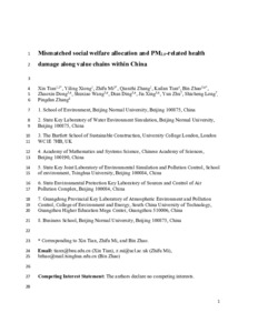 Title: | Mismatched Social Welfare Allocation and PM₂.₅-Related Health Damage along Value Chains within China |