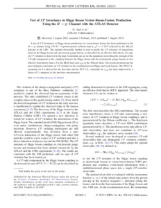 Title: | Test of CP Invariance in Higgs Boson Vector-Boson-Fusion Production Using the H → γγ Channel with the ATLAS Detector |