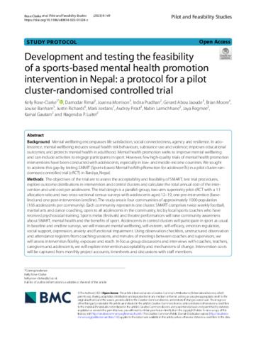Title: | Development and testing the feasibility of a sports-based mental health promotion intervention in Nepal: a protocol for a pilot cluster-randomised controlled trial |