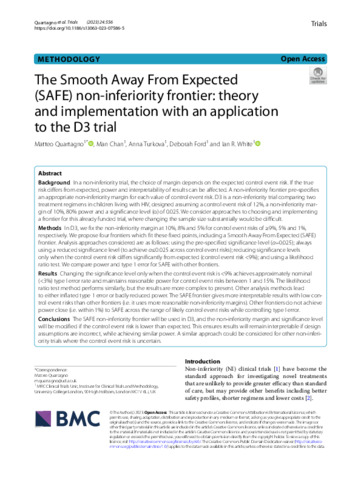 The Smooth Away From Expected (SAFE) non-inferiority frontier: theory and implementation with an application to the D3 trial.