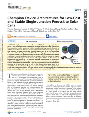 | Title: | Champion Device Architectures for Low-Cost and Stable Single-Junction Perovskite Solar Cells |