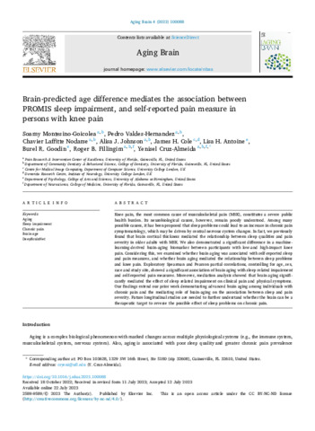 | Title: | Brain-predicted age difference mediates the association between PROMIS sleep impairment, and self-reported pain measure in persons with knee pain |