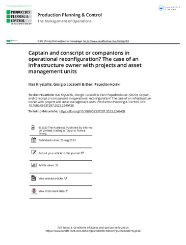 Captain and conscript or companions in operational reconfiguration The case of an infrastructure owner with projects and asset management units.pdf - Published Version Download (2MB) | Preview |