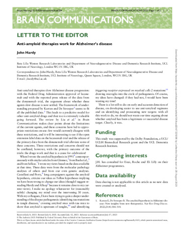 | Title: | Anti-amyloid therapies work for Alzheimer's disease |