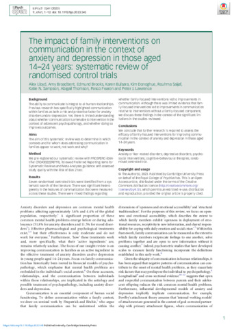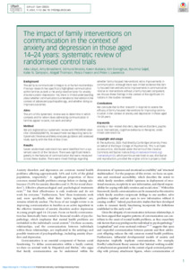 The impact of family interventions on communication in the context of anxiety and depression in those aged 14-24 years: systematic review of randomised control trials.