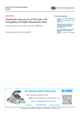 | Title: | Tracking the Lifecycle of a 21700 Cell: A 4D Tomography and Digital Disassembly Study |